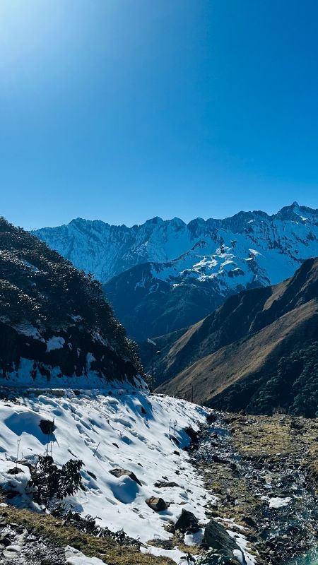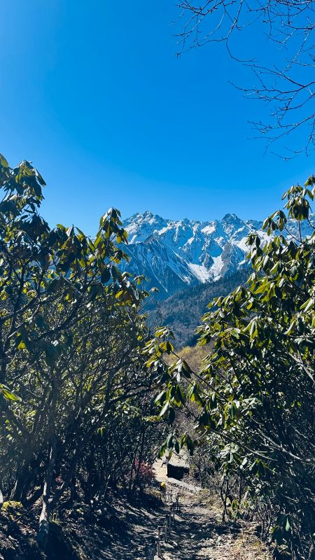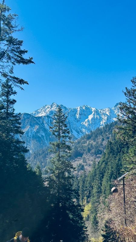 森林茂密,远处雪山清晰可见,山顶还有个海子。关键全程的路面,不说豪华,至少也是打造过的,在咱们徒步伙伴人的眼里,绝对算得上是“高速”了。毕竟通往这个世外秘境的路上,竟也铺了石子和木梯。