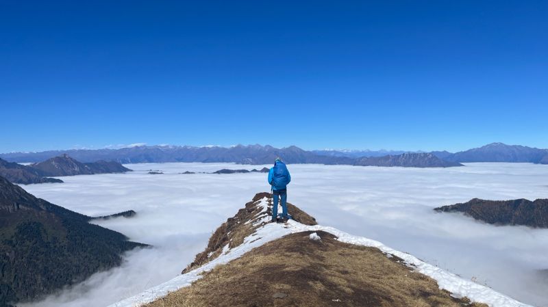 第一次10公里徒步,对新手来讲还是有难度的,好在有阿力领队的帮助,还有团友们的鼓励。每次抬头看见他们都在就很安心,没他们我肯定领不到奖牌的,在最后一分钟领导奖牌,阿力领队值得信任。要了我的老命,收获满满成就感。前几天一直下雪,,今天的大太阳太给力,云海很漂亮,意外之喜。