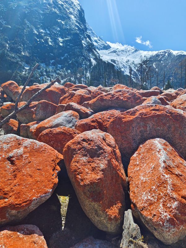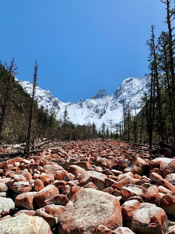 接着前往理小路精华景点之二【红石滩】这里有雪山、森林、草甸、溪流…尤其是规模宏大的红石滩,是除了海螺沟红石滩之外,中国第二大红石滩!!在山谷里绵延一两公里,非常壮观,山地立体型气候,空气污染度为零,属于原始生态景点,关键无门票。跟随领队前往红石滩徒步2公里,近距离感受雪山脚下的红色石滩,在此游玩2个小时,午餐可在此自由觅食,有烧烤,小吃,方便面等,也可以自带,随后继续沿着理小路前行。