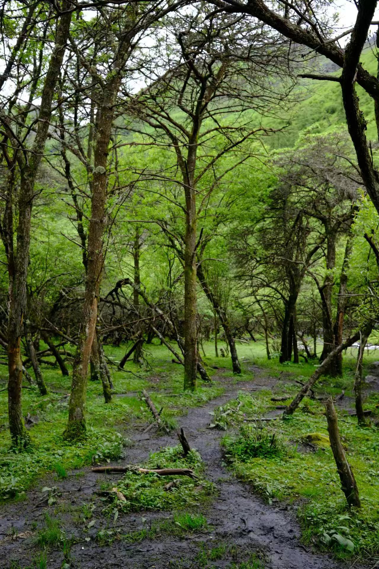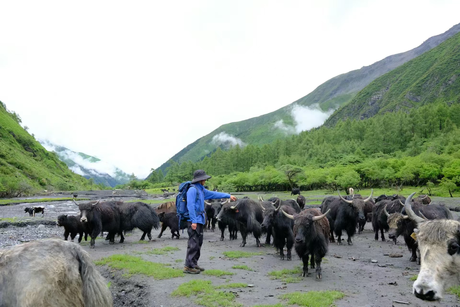 从村子乘坐中转车前往小木屋,徒步经过原始森林、涉水走过河滩溪水、遇见高山的挂壁牦牛、草甸、海子….就像是穿越时空进入了新的世界,每一处都值得驻足、放空。