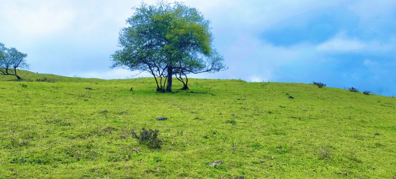 这块草甸不因山高而孤独,不因路远而憔悴,大多时候她总是孤零零地守着青山、依着松林,沉默不语。她静静的,随着季节的更替张扬、隐忍,它不哗众取宠,也不冷漠封闭,就这样淡然地随着时光斗转星移,远离喧嚣,却又不被红尘抛弃。