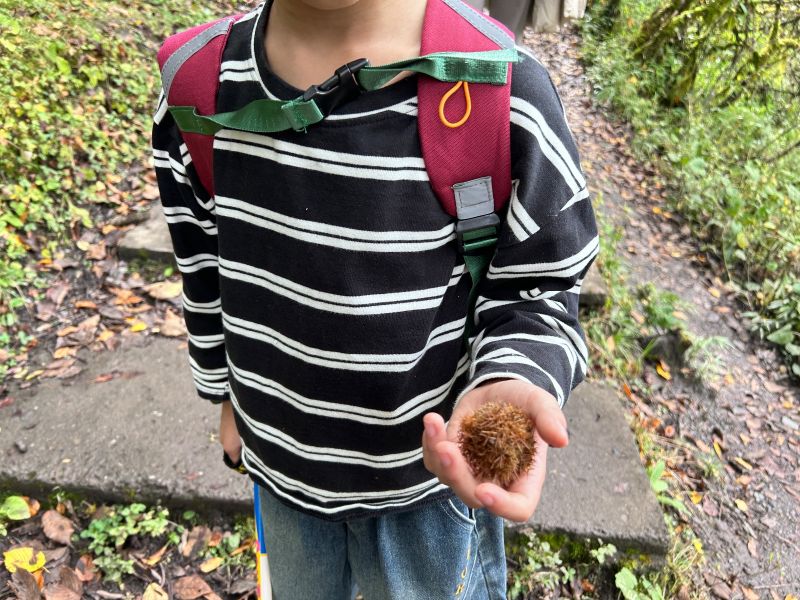 穿过云杉翠林,那一抹小红点由远而近雀跃而来,厚实的雨衣包裹着少女,漂亮的大眼满是俏皮戏谑,仿若吸食了灵气的小仙女。春季山里的野味小果实颇多,成熟的树莓紫得发黑,沾染的雨露,看上去可口极了。