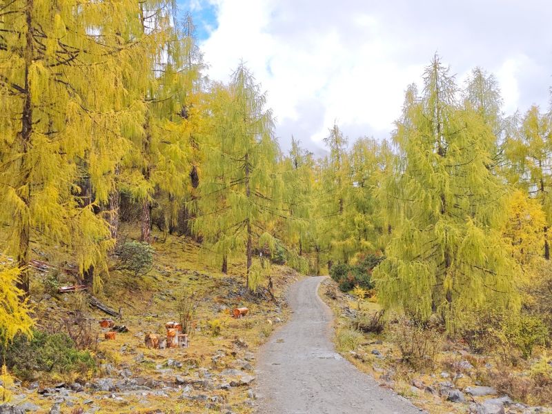 早起起床,早餐后,出发前往党岭开始今天的迷人的自然风光徒步,中途可以在【飞机坪】稍作休息,这里是一片大的草原,牧民在这里设点可以喝奶子茶,吃方便面等,再经过草海子. 再往上徒步约1小时就是美丽的【葫芦海】。葫芦海有很多美丽的传说..... 葫芦海是状似葫芦的湖泊,由一大一小的两个湖泊组成,当地称其为葫芦海。在葫芦海上方还有一片海子,名叫【卓雍措】,葫芦海和卓雍措、甲依拉措是党岭最漂亮的高山海子,也是我们此行景色最为壮丽的地方,深秋的海子,水质清澈见底,四周彩林浸染,倒影在海子里,非常漂亮,犹如一幅幅漂亮的浓墨油画。游玩后,可原路返回下山,也可提前联系当地摩托车下山,前往党岭村客栈入住。