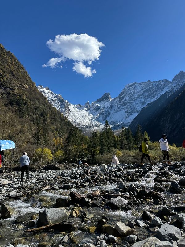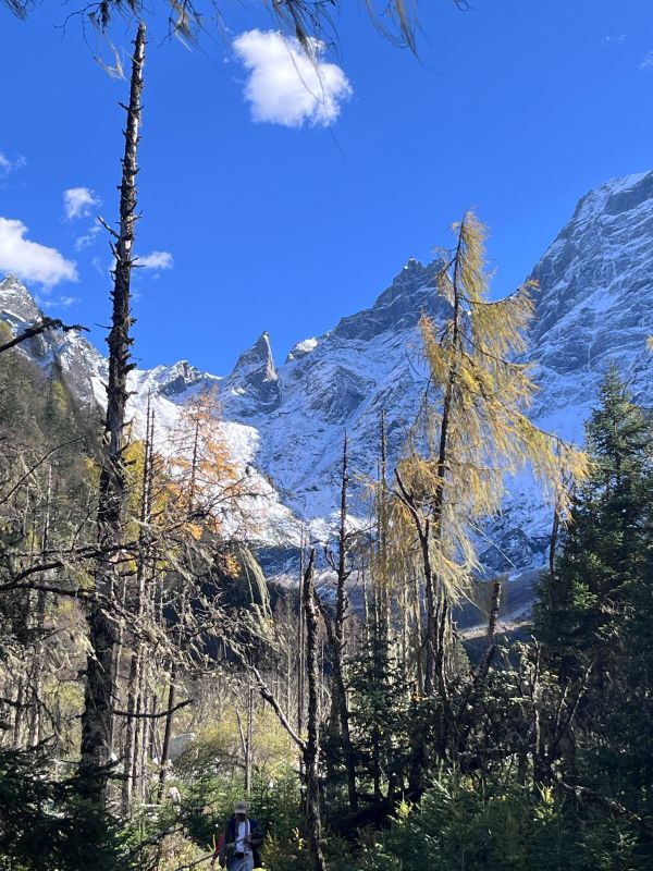 从成都出发在下午,没想到到了居然出太阳了!领队人挺好,还帮我们拍照片了,景色也不错,废话不多说,看图