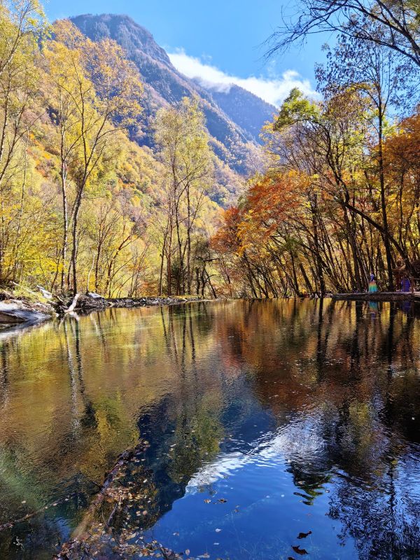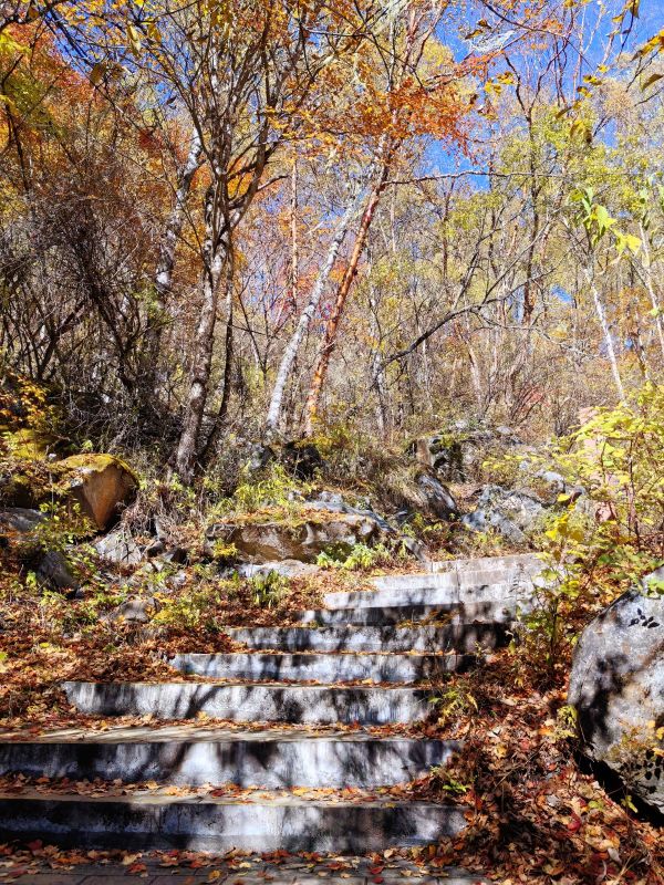 当秋天的风拂过,这里开始变得五彩斑斓,彩林似火,相映成趣,它在大自然的勾勒下,开始作出一幅精妙的油画,步步皆是景。