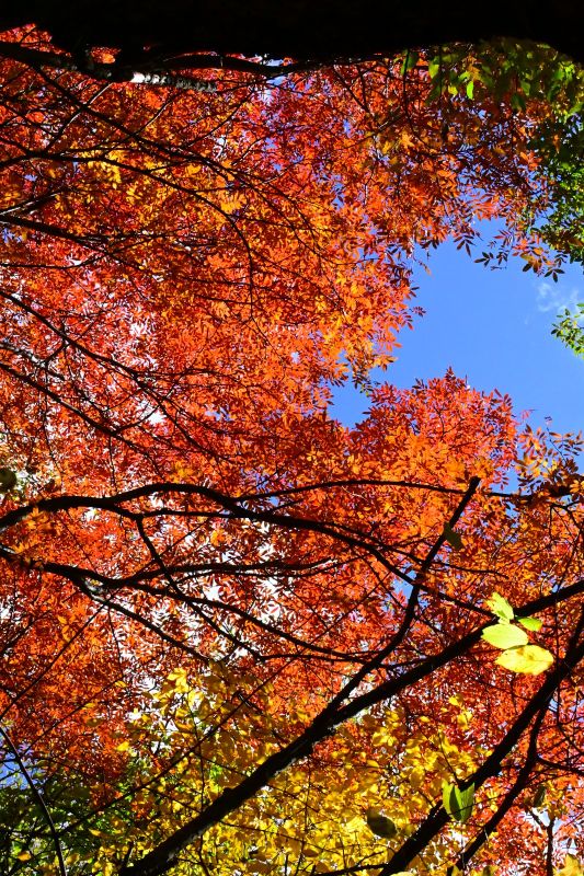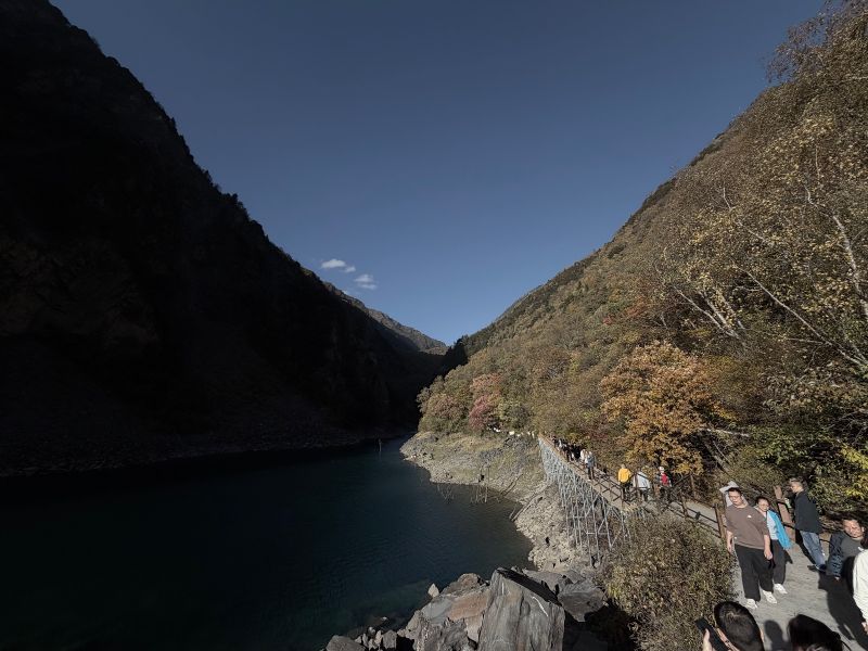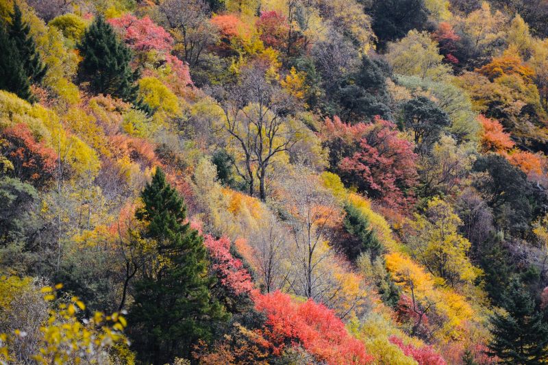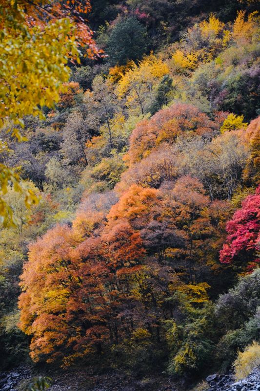 当秋天的风拂过,这里开始变得五彩斑斓,彩林似火,相映成趣,它在大自然的勾勒下,开始作出一幅精妙的油画,步步皆是景。