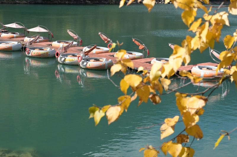 秋季,松坪沟除了有红叶可赏,有海子可看,还有一叶小舟在水面的轻荡,你可以乘一叶扁舟,入景随风,于这碧波之中,仰观这里山水的美妙。