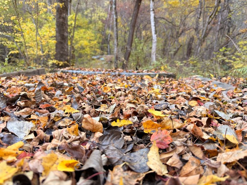 有隐藏小路,全是五颜六色的落叶,堆满了一地。走上去咯吱咯吱的清脆声超解压。