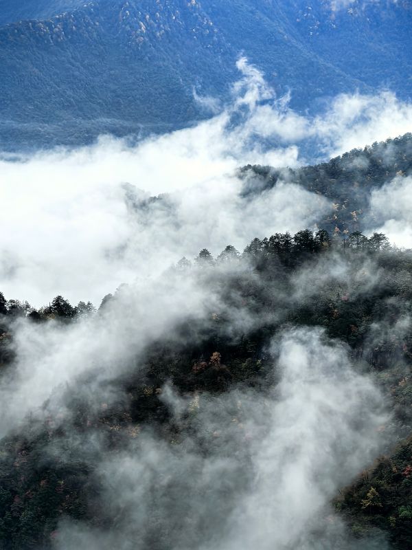 瓦屋山的秋季云海景观让人迷醉,当亲临山顶时,被眼前的景象震惊!满山全是乳白色的雾气,那么深,那么浓,汹涌着,翻滚着吞没了山间的一切