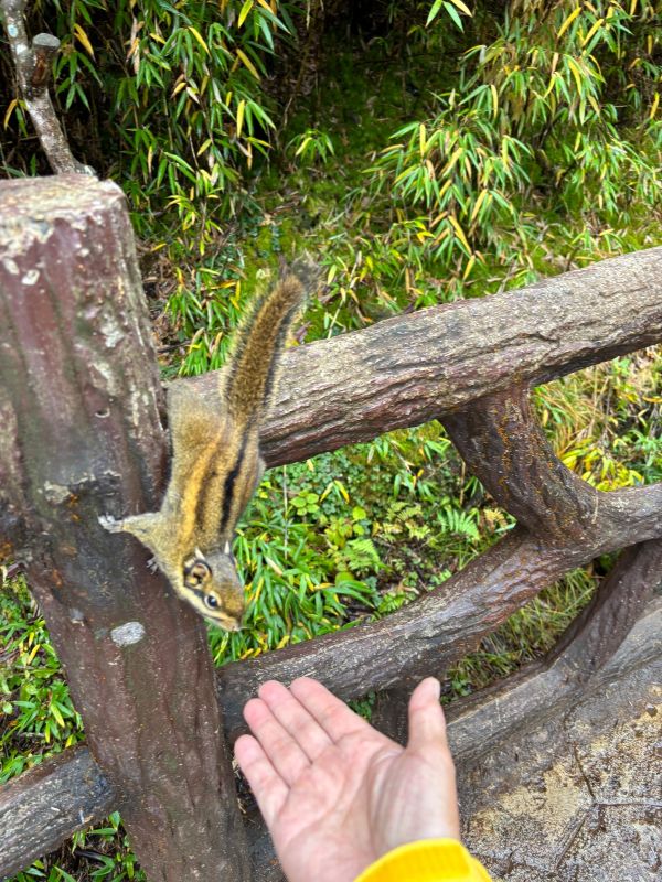 今天老天算是给脸,没下雨,瓦屋山山顶云雾缭绕,景色不错,遇到好多亲人的小松鼠,还看到了在树枝上闲庭信步的小熊猫,简直运气爆棚。可惜的是兰溪绝壁在维修,没有看到,挺遗憾。领队把行程交代的很清楚,还热心的给徒友们拍了很多美图,辛苦啦