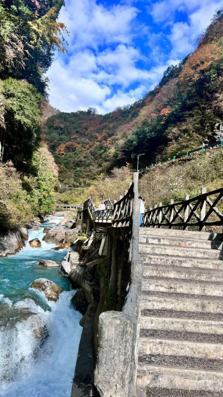 熊猫栈道:熊猫栈道位于海拔2800米的原始森林里,全长3公里。秋季,山林间层林尽染,宛如置身五彩童话世界,也是彩林的最佳观赏地。在这里还可与小熊猫、羚牛等野生动物不期而遇。