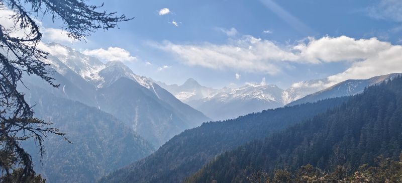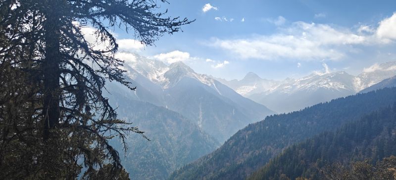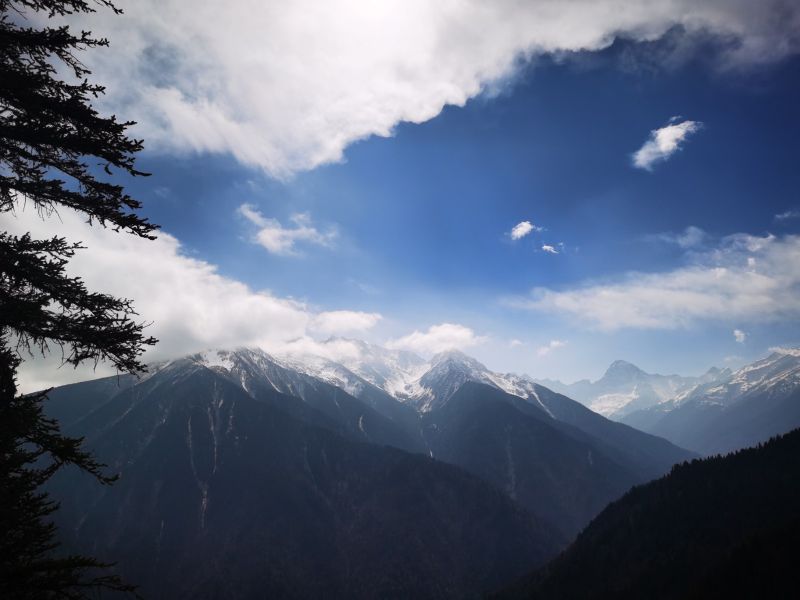 穿过松萝密布的原始森林,到达斯博迪高山牧场,成群的牛羊、远处的雪山,构成一幅绝美和谐的画面。