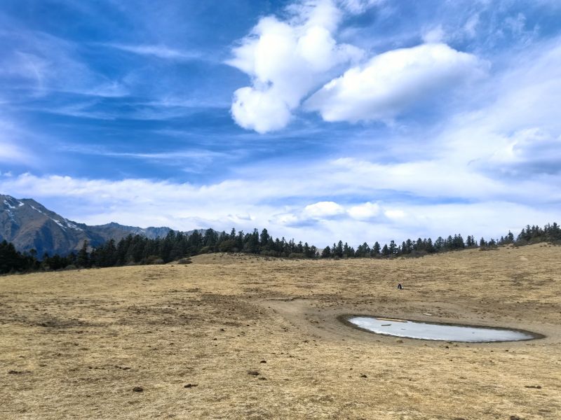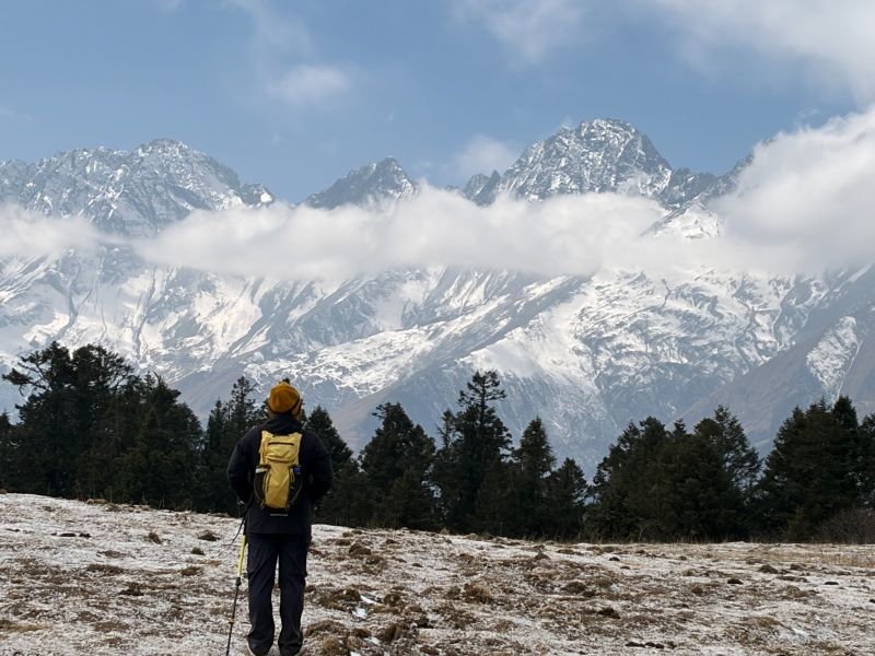 半原始森林山脊纵走,远处雪山不时隐现,感受回归山野的真趣。