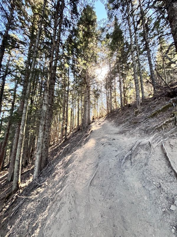 前路,明显而开阔,针叶林松软的地面,阳光晒下斑驳光影。