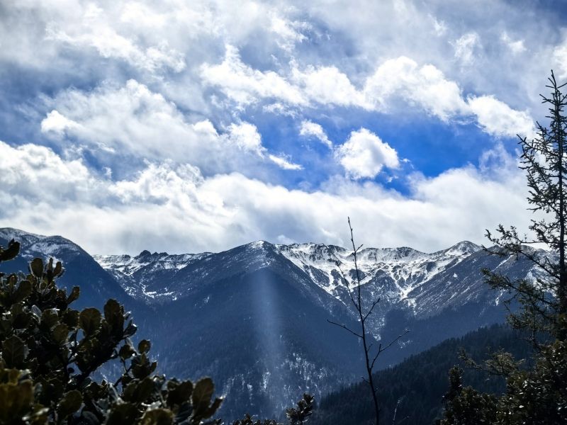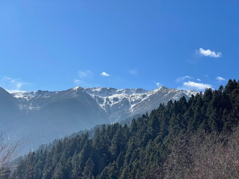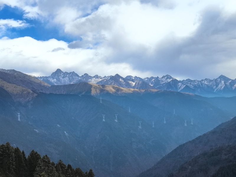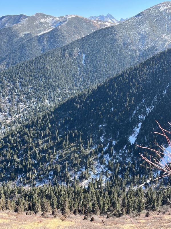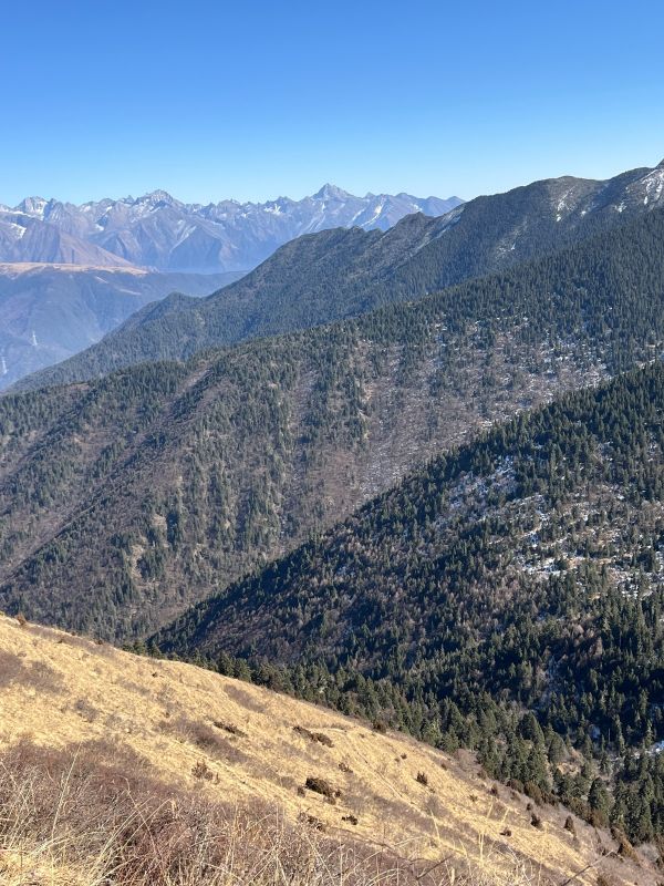 半原始森林山脊纵走,远处雪山不时隐现,感受回归山野的真趣。