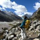 略显陡峭的山间小径,走起来稍微费力。不甚明显的山路纵横交错,几度往返终至第一个山脊平台,翻飞的经幡中穿行,像是经历灵魂的洗礼。