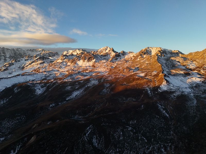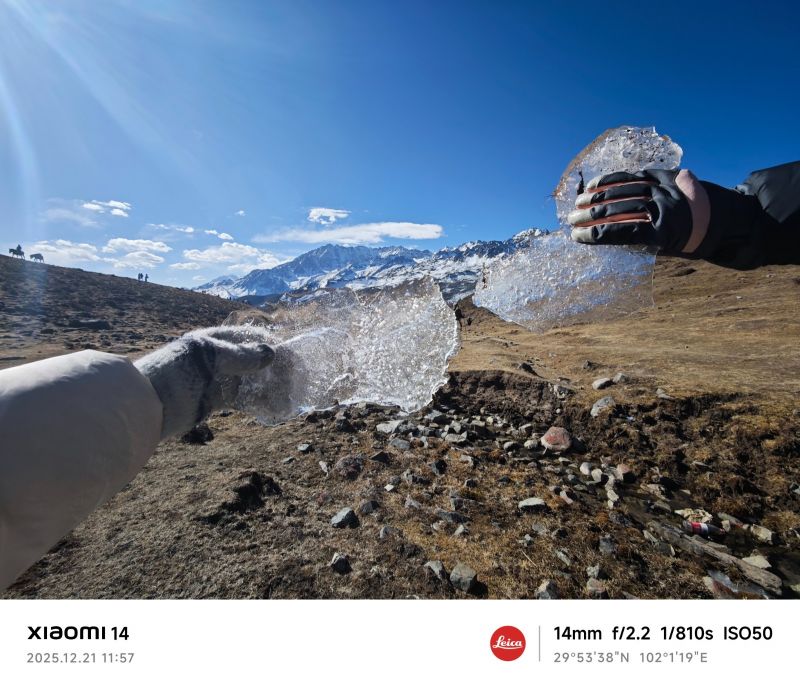 ⭐ 沿途美景:山野徒步翻越山脊线,看日照金山、云海翻滚、雪山海子,冬季还可以欣赏到蓝冰,感受无边界的自由感,随便怎么拍都出片。