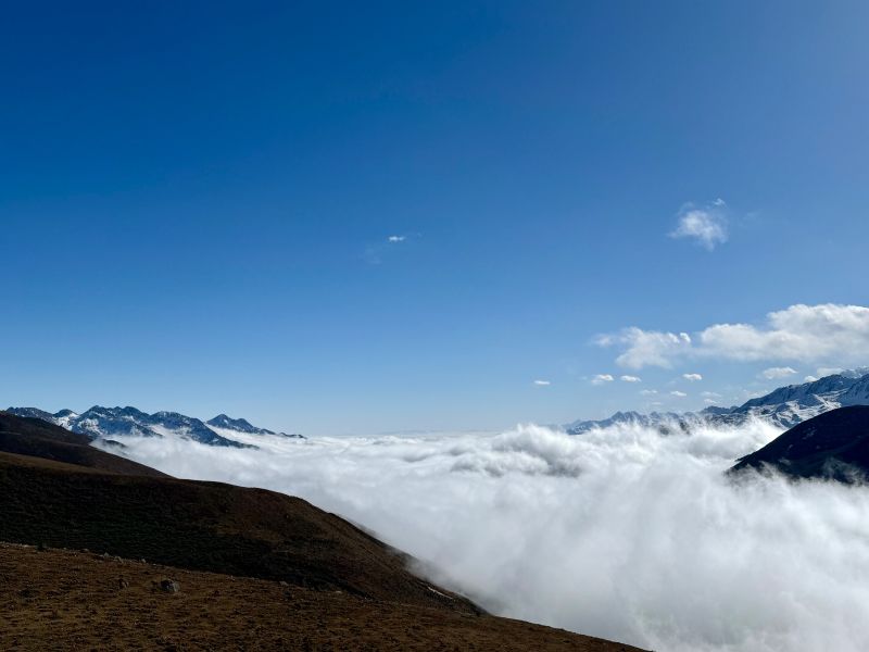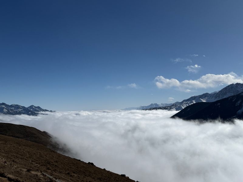 ⭐ 沿途美景:山野徒步翻越山脊线,看日照金山、云海翻滚、雪山海子,冬季还可以欣赏到蓝冰,感受无边界的自由感,随便怎么拍都出片。