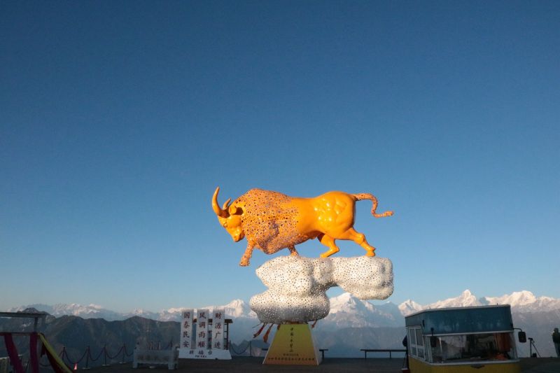 “蜀山之王”贡嘎雪山矗立于牛背山的正西最高点,虽然海拔不算太高,但牛背山的山顶可观云海、日出、夕阳、佛光、星轨等自然美景。