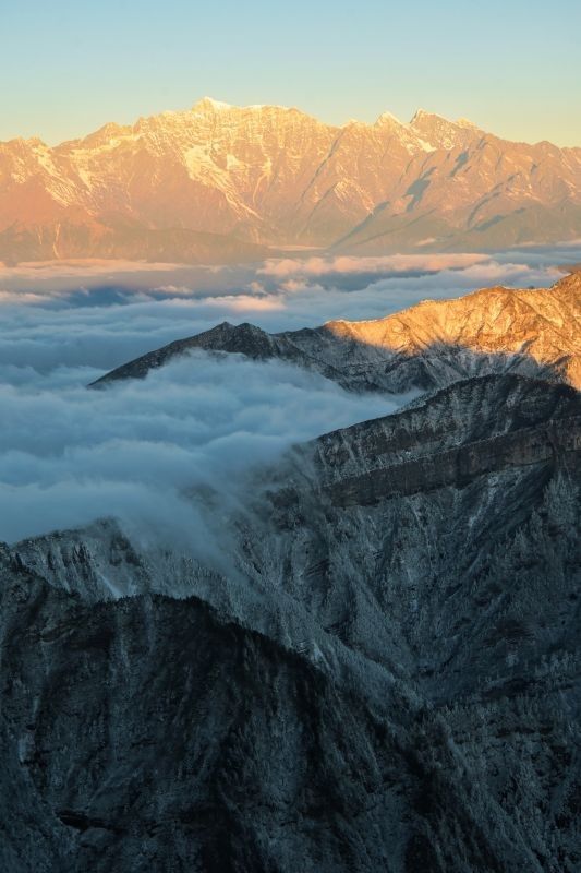 在冬季,雪花如细碎的钻石般飘落,将世界装扮成一片洁白无瑕。雾凇冰挂,银装素裹,雪山的轮廓在这片纯净的背景中愈发清晰、分明。而秋冬季节,高山上的天气往往更为稳定,云海日出的美景也更易呈现。只需一点点好运气,你便能拥抱这壮丽的世界,感受大自然的无限魅力。