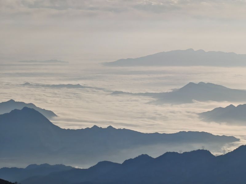 牛背山最美处,就是举目皆是的云海。云海一望无际,一直延伸到天边。还有曼妙柔纱般的云瀑,浓密而均匀,时而平缓,时而汹涌,时而沿着山脊倾泻而下。