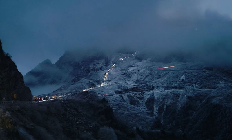 装备清单:羽绒服、厚衣物、登山鞋、登山杖(必备)、头灯或手电(必须)、冰爪(组织方提供免费使用)、暖宝宝(组织方提供)、个人常用药品、双肩包、充电宝、保暖帽子、墨镜、防晒霜 SPF50+、保温杯、饮用水、路餐、零食(高热量)、备用雨具、相机、拍照道具等。