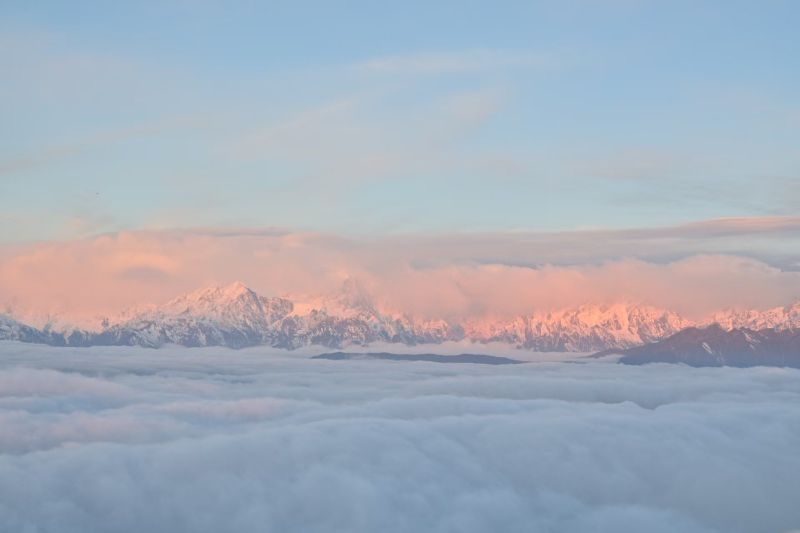 “蜀山之王”贡嘎雪山矗立于牛背山的正西最高点,虽然海拔不算太高,但牛背山的山顶可观云海、日出、夕阳、佛光、星轨等自然美景。
