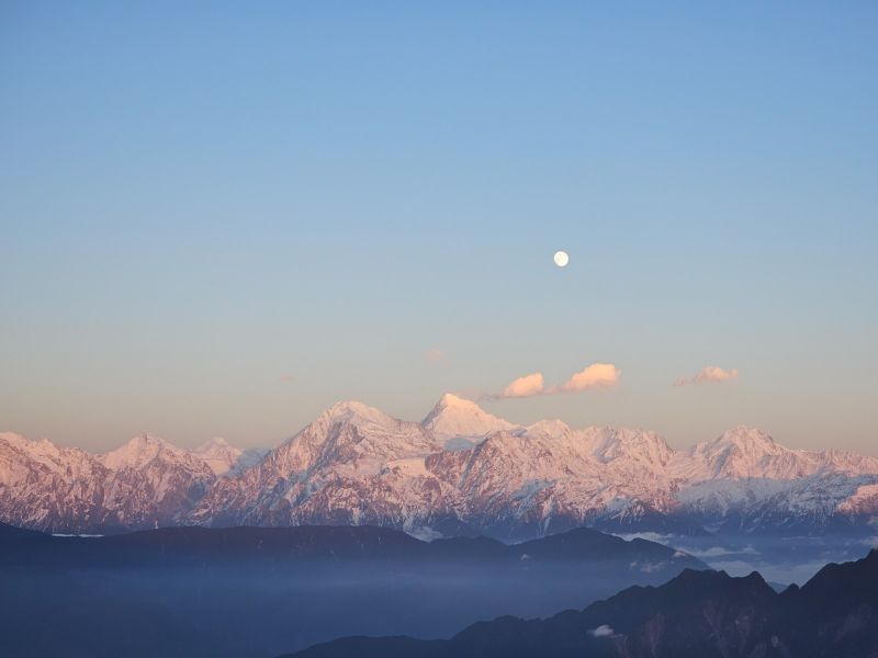 “蜀山之王”贡嘎雪山矗立于牛背山的正西最高点,虽然海拔不算太高,但牛背山的山顶可观云海、日出、夕阳、佛光、星轨等自然美景。