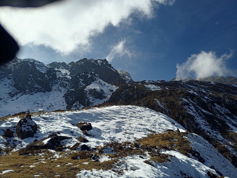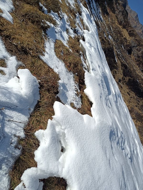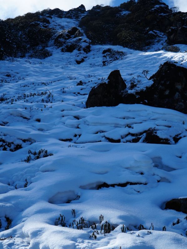 猴子非常顽皮,山顶雪很厚,领队认真负责。