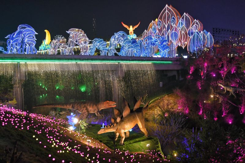 35米“华结映门”、210米“神奇华夏”等巨型灯组