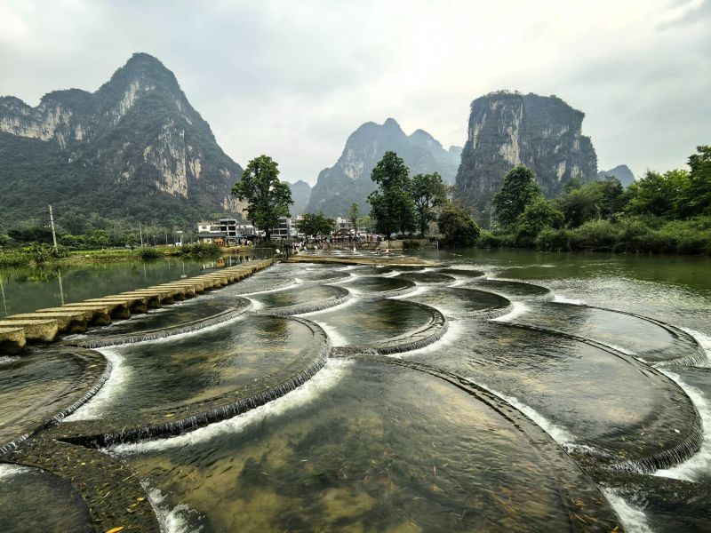 与中越边界德天跨国瀑布距离约37公里,藏着一个有着“山水画廊”和“隐士之居”之美誉的地方——明仕田园。因仙侠玄幻剧《花千骨》的长留仙境在这里取景,故它也被称为“神仙居住的地方”。早餐后出发前往这片醉人的世外桃源,这里山清水秀,山环水绕,素有小桂林之称! 给人一种远离城市喧嚣,清新惬意、安静闲适的感觉!