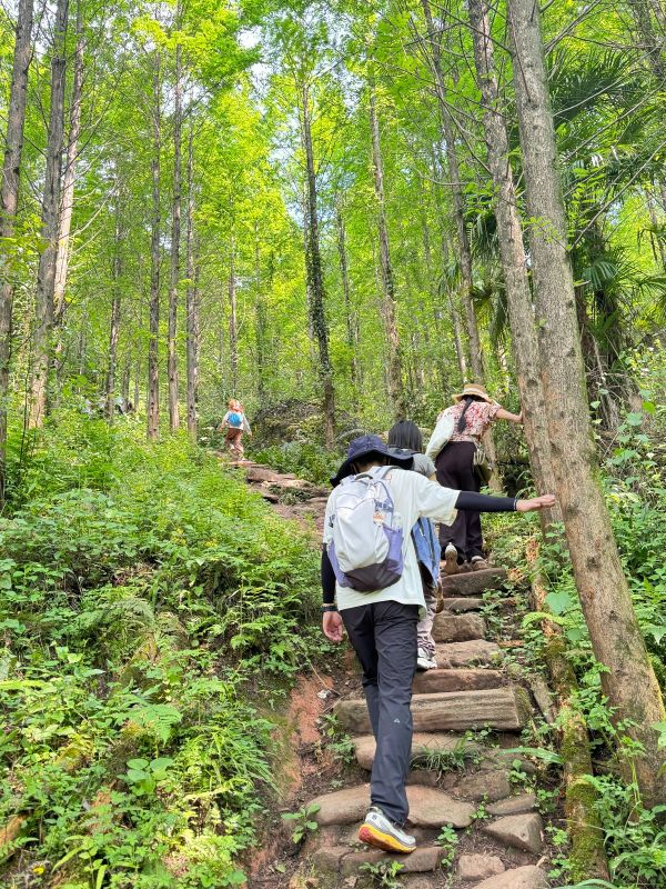非常不错的体验,一群可爱的人儿一路欢声笑语。起点到终点上去耗时一个半小时,下来接近一个小时。小朋友都可以走完的。万宝领队非常幽默行程中也不会感觉枯燥。木木领队和娜娜领队还有啊浩领队都非常有耐心。拍照技术也特别好。一路风景美不胜收。中午的柴火鸡 味道也不错,配菜应是当地农家自种无公害。桑葚园随意吃注意不要吃到坏的了。个人而言,如果可以的话情愿在云中屋玩一天不采摘桑葚也行。