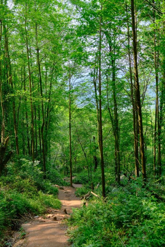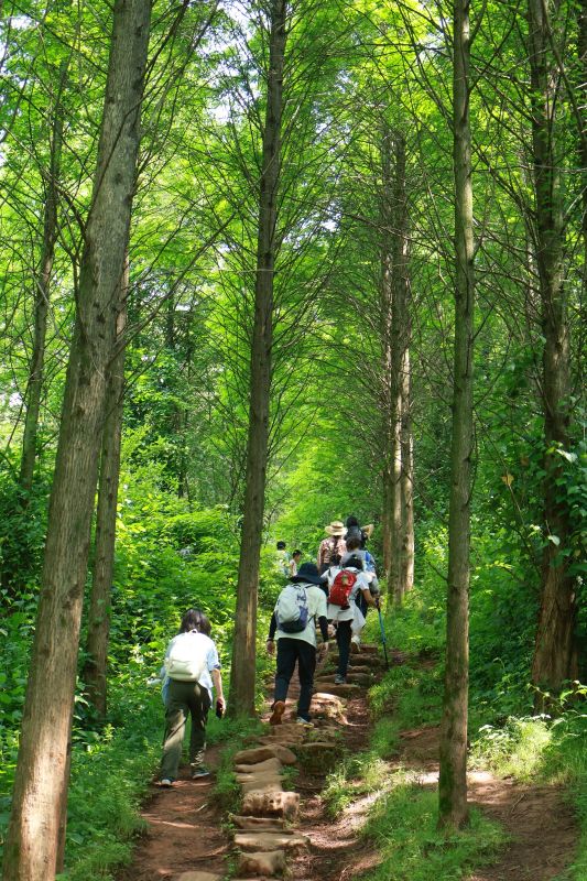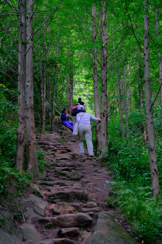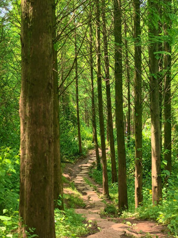 沿途的小路你总能发现无尽的惊喜,蜿蜒的小径、竹林沙沙、禅茶飘香,继续往上走,穿过杉树林,嫩绿的芽儿,柔柔弱弱,却像重锤一样砸进你的胸腔。