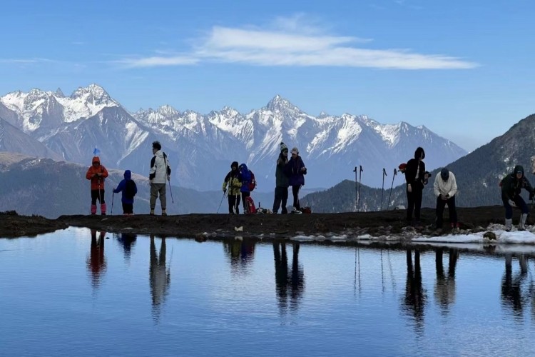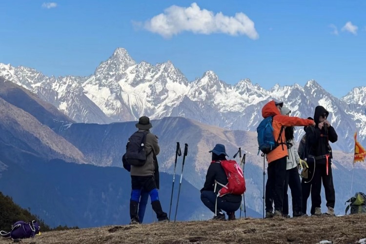 半原始森林山脊纵走,远处雪山不时隐现,感受回归山野的真趣。
