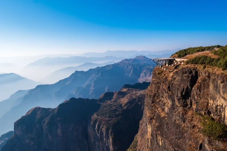 站在悬崖边的观景台上