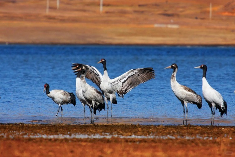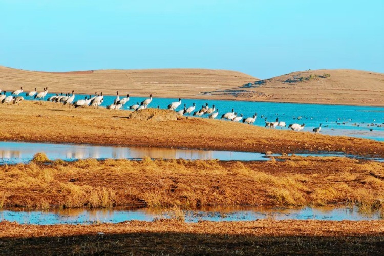 每年冬天都会吸引大批黑颈鹤