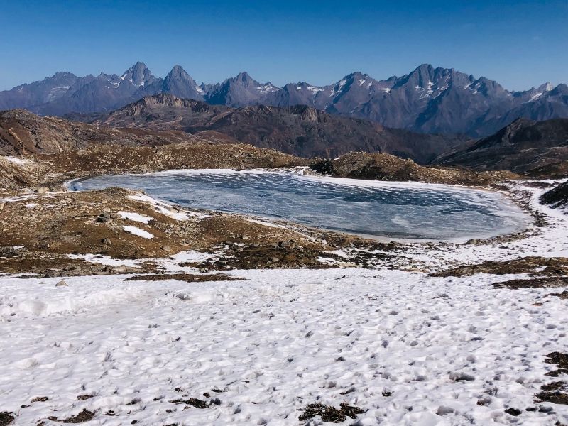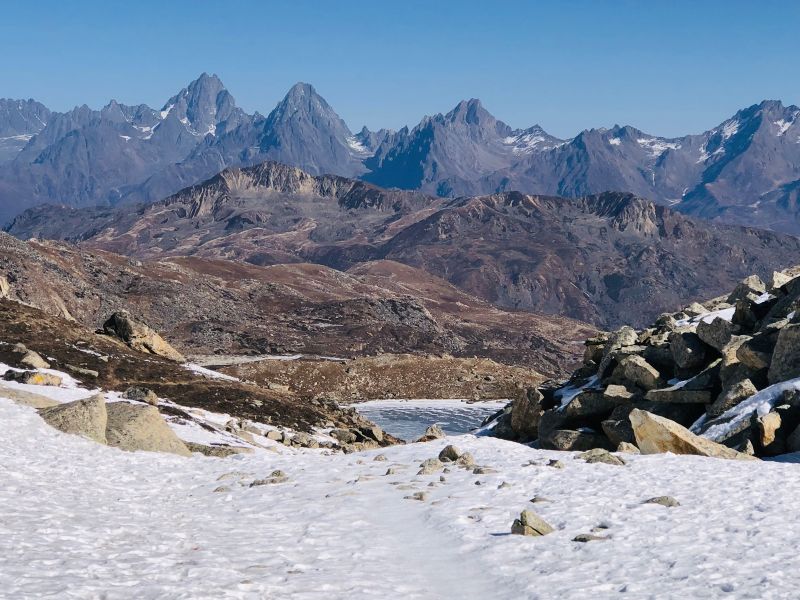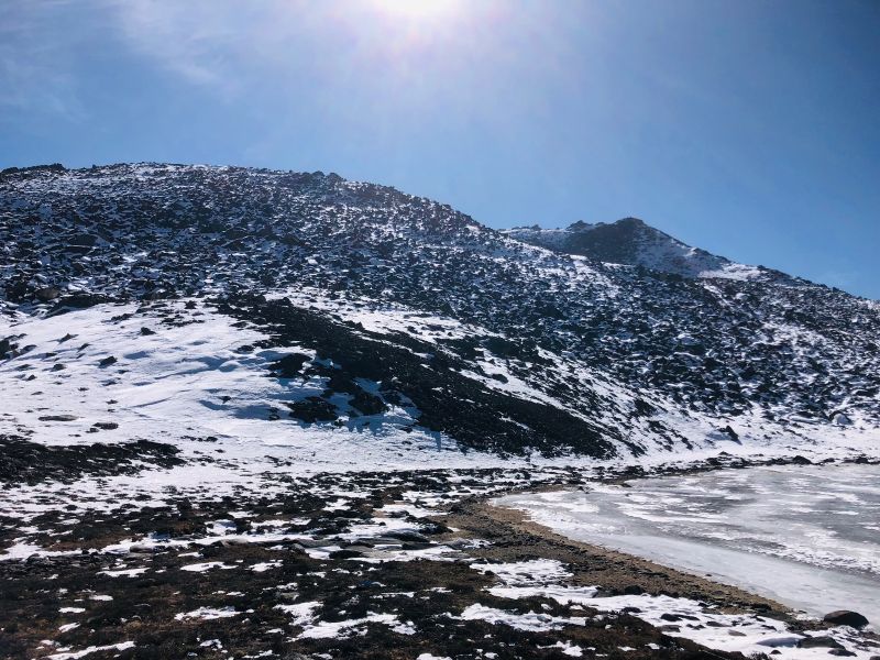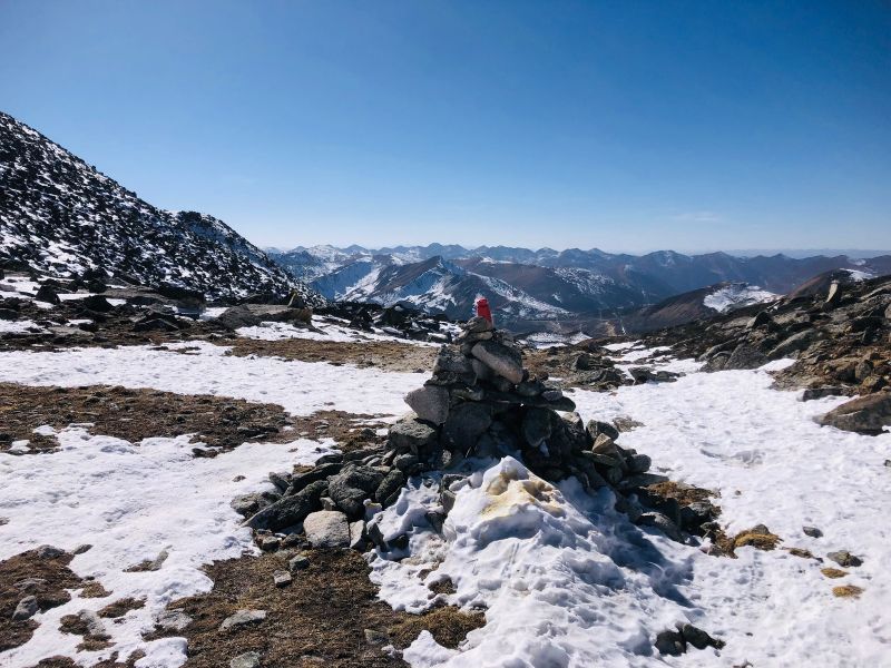 早上集合点准时出发,由于车程时间很远,大家切勿迟到;车上领队讲解行程安排及注意事项,我们一路行驶在雅康高速至上,在天全服务区稍事休息20分钟左右,之后继续出发去往甘孜首府【康定】下高速后穿过郭达山隧道来到折多山,在蜿蜒曲折的盘山路上行至垭口下方,停好车后大约11:30左右开始徒步前往蓝冰海子,走大约2km不到的机耕道后,开始上至碎石路段,碎石路容易打滑崴脚,大家一定要穿着中高帮的鞋子鞋带登山杖做好防护;大约走到5km处的蓝冰海子,打卡后原路返回至折多山垭口,乘大巴车返程,大家相互分享照片,结束愉快的一天。