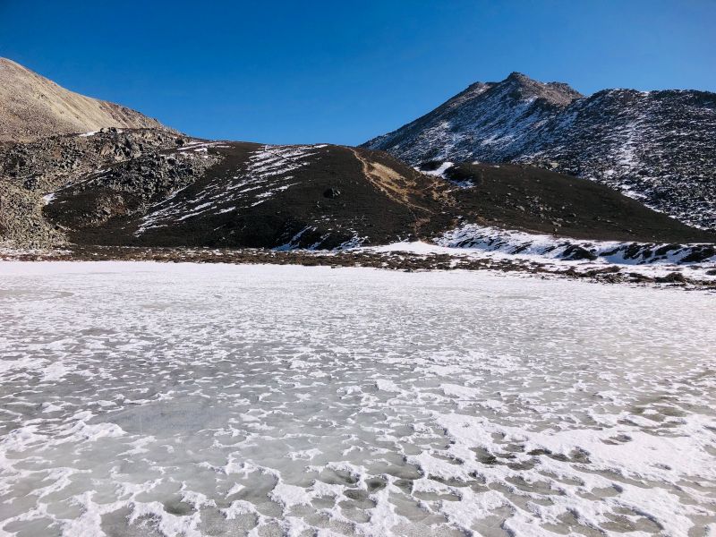 说起蓝冰,大部分人会想到冷嘎措,但比冷嘎措更近、更容易到达的折多山,景色却并不逊色于它。