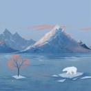 裸露的山石与结冰的湖面相映