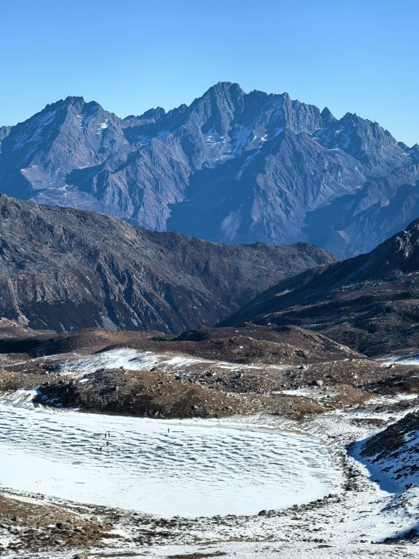 今天早起出发,预计5:00左右出发前往折多山,6:00左右到达折多山观景台,沿途星空相伴,远眺贡嘎,等待日照金山。适时开启今日蓝冰之旅,单边行程约4-6km抵达目的地,走上湖面,拍一组以雪山为背景的冰雪大片,是冬季折多山最吸引人的地方。碧蓝的冰面上是隐约的倒影,这是每个摄影人都不愿错过的画面。天气好的时候是货真价实的天空之镜,湖的背面,远方是雪山,湖面倒影着雪山与蓝天,这一幅冬日限定的美景,在此刻体现的淋漓尽致。游玩结束后返回成都,结束两天愉快的旅程。
