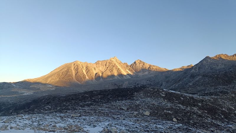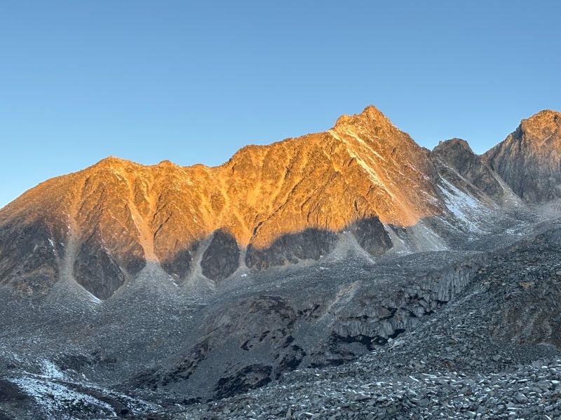 天气给力,看到了日照金山,遗憾的是雪太厚,没看到蓝冰。两位领队很贴心,一直提醒大家保暖。确实山上特别冷,海拔有点高,对易高反的同学还是要量力而行。