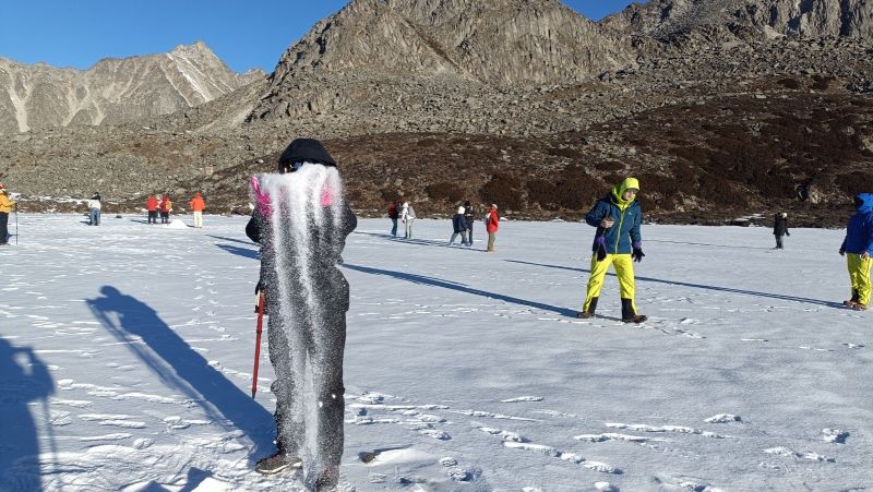 2、垭口风大,请务必携带手套、帽子、厚衣服防寒;必备冰爪、登山杖、保温杯!最好防晒