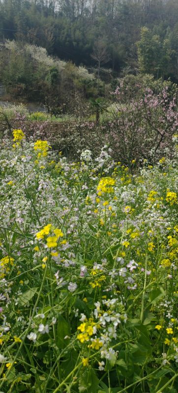 这里春天景色丰富如图,路上有野樱花(快谢了),山茶花(开了一点点),油菜花(快谢了),有竹林、松树林、古梨树、铁路,有小溪流,可眺望雪山,有折耳根和野葱。222222222222.jpg