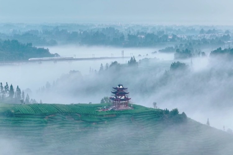 最近,一段拍摄于雅安名山茶园的现实版“千里江山图”视频火遍全网!不仅被人民日报、央视新闻转发,连外交部发言人都为之点赞。视频中,云海作幕,茶园为台,晨雾缭绕间高铁飞驰……1.jpg2.jpg