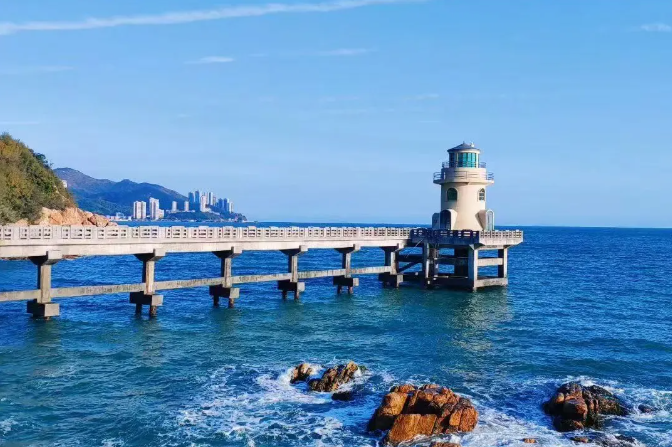 下午根据潮汐时间,前往双面海——这里是东山岛最神奇的地方,涨潮时两面海水相拥,退潮时一条沙洲浮现,可步行至南屿,打卡绿白相间的灯塔(电影《你的婚礼》取景地)。