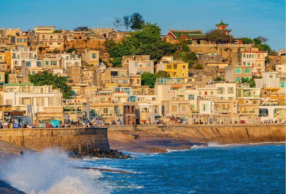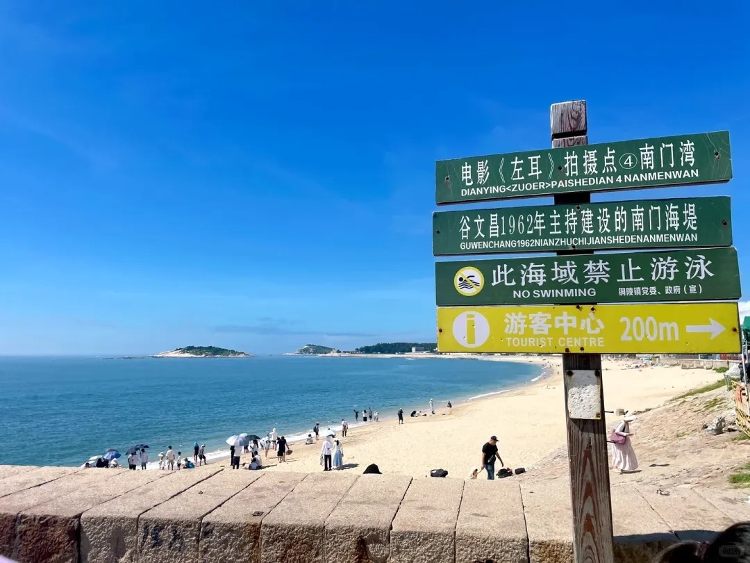午后渡海前往福建东山岛(车程约3小时),抵达后直奔南门湾——这个因电影《左耳》而闻名的彩色渔村,一面是碧海蓝天,一面是五颜六色的闽南民居。拾级而上至左耳天台,在落日余晖中俯瞰整个海湾,找一家海景咖啡馆,把时光浪费在美好的事物上。