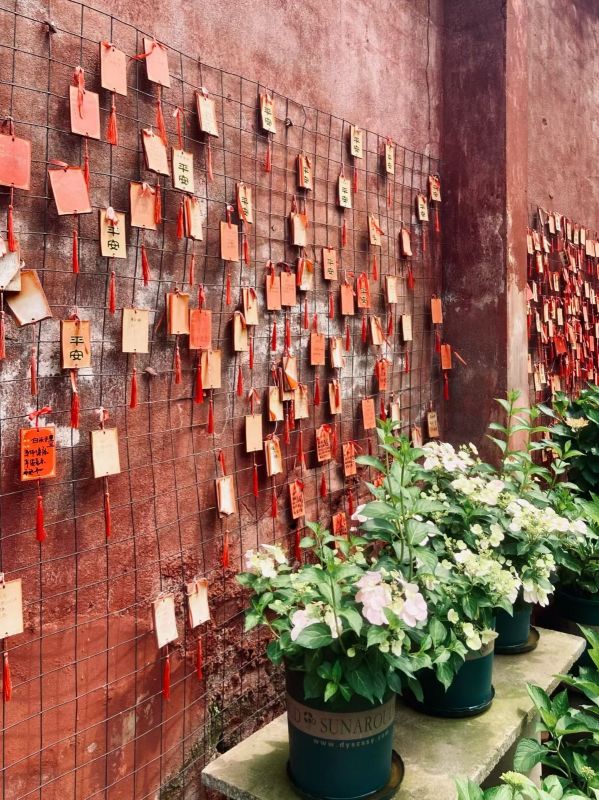 行走在寺庙内,花团锦簇、小桥流水、亭阁楼台、绰绰树影。