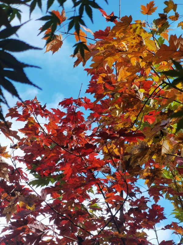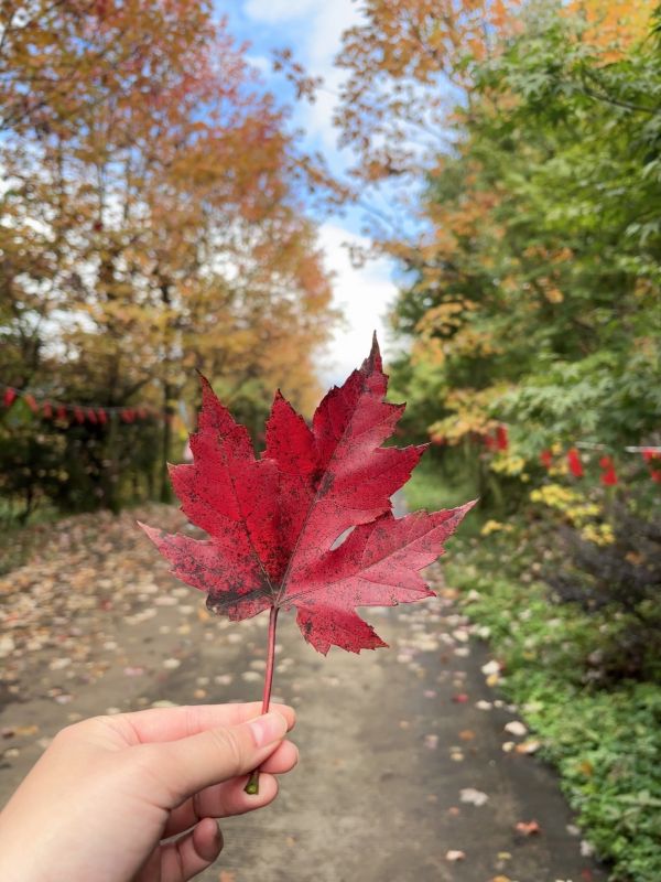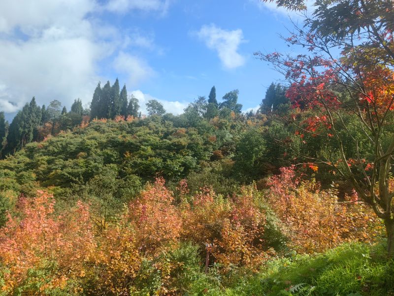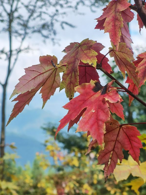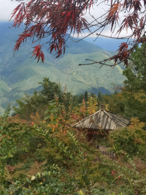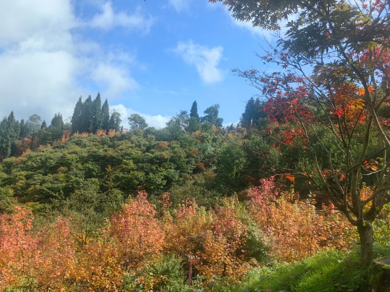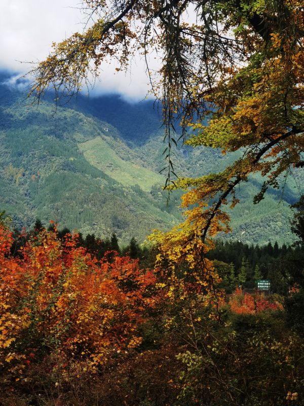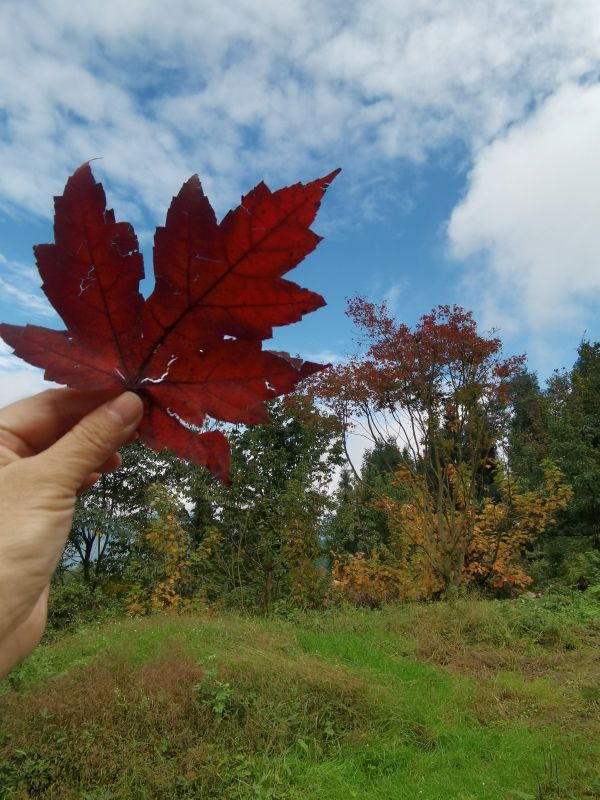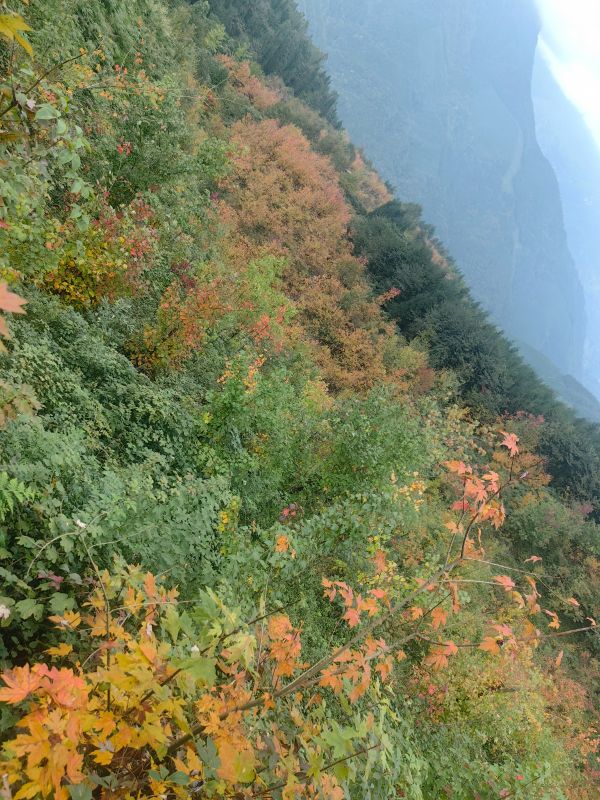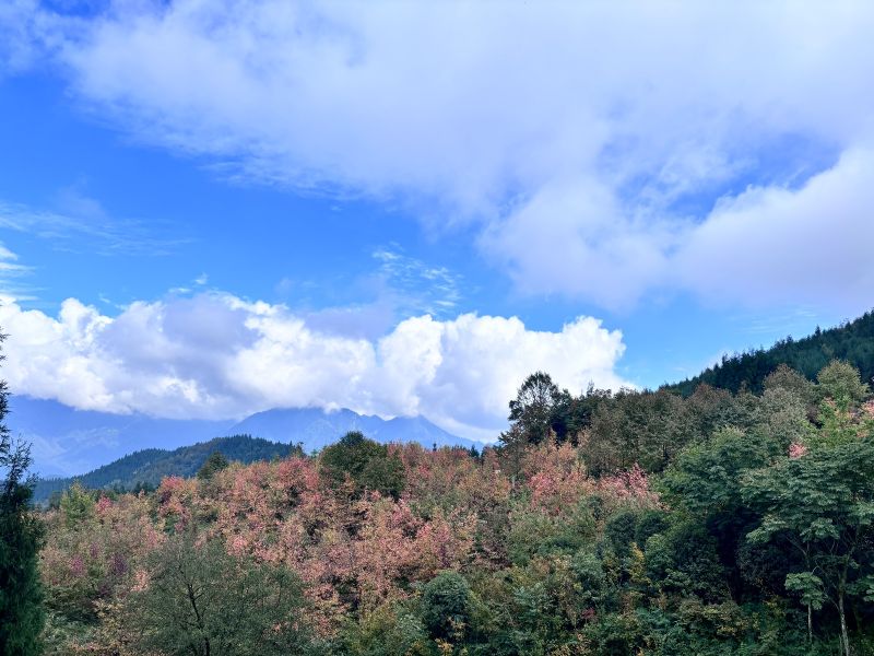 领队小姐姐性格很好,枫叶还没咋个红,但是遇到了蓝天晴天,很开心,还锻炼了