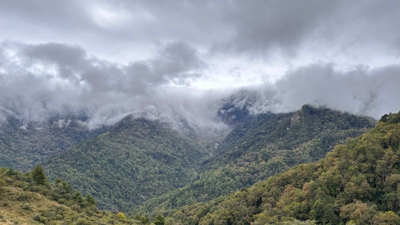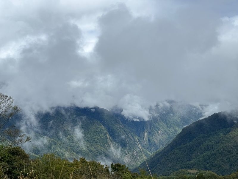 透过嫩绿的草叶儿依然能预见它碧空如洗的静美,草丛中点缀着各色草甸小野花,在春风中娇小且倔强。风徐徐而来,远处的雪山渐渐显露身姿,层层绿色在缥缈的云雾中忽明忽暗,云雾从山涧升腾而起或从山尖倾泻散漫开来,宛如仙境,美到窒息。