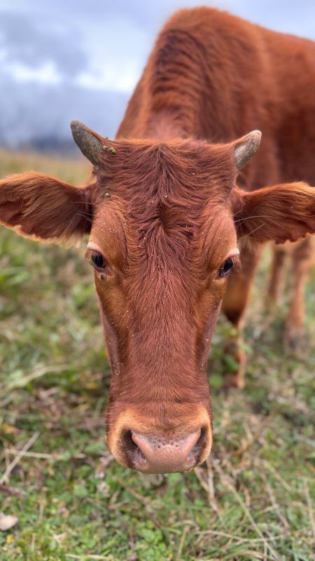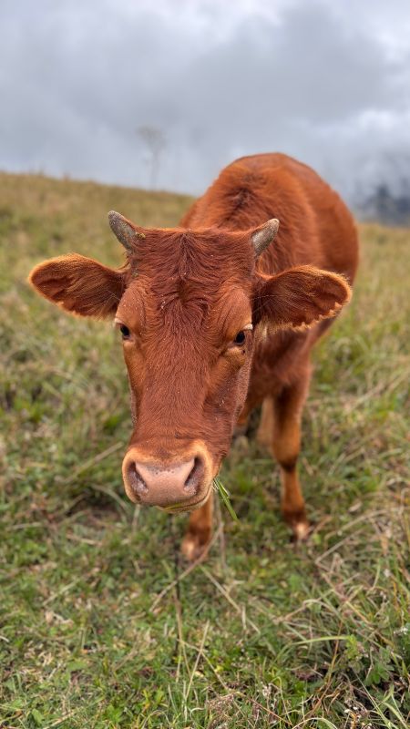涉过海子,越过山坡,牧场芳草绿萋萋,风柔软得像绸缎一样拂过面庞,细雨微凉体感舒适,这里,牧歌如风般述说。或是食天地灵气,这片高山草地上的牛羊健硕,散漫地游走在草甸,啃食嫩芽儿。也或是少有人扰,生性温顺的它们,面对镜头毫无怯意,满眼的温柔与好奇。
